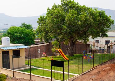 5. 1500 sq. ft real grass mating in the ground for Children.